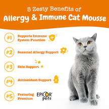 - This Mousse is Nothin’ to Sneeze At! - Allergy & Immune Cat Mousse is packed with ingredients that may provide seasonal allergy support, while also supporting the immune system for your pet.